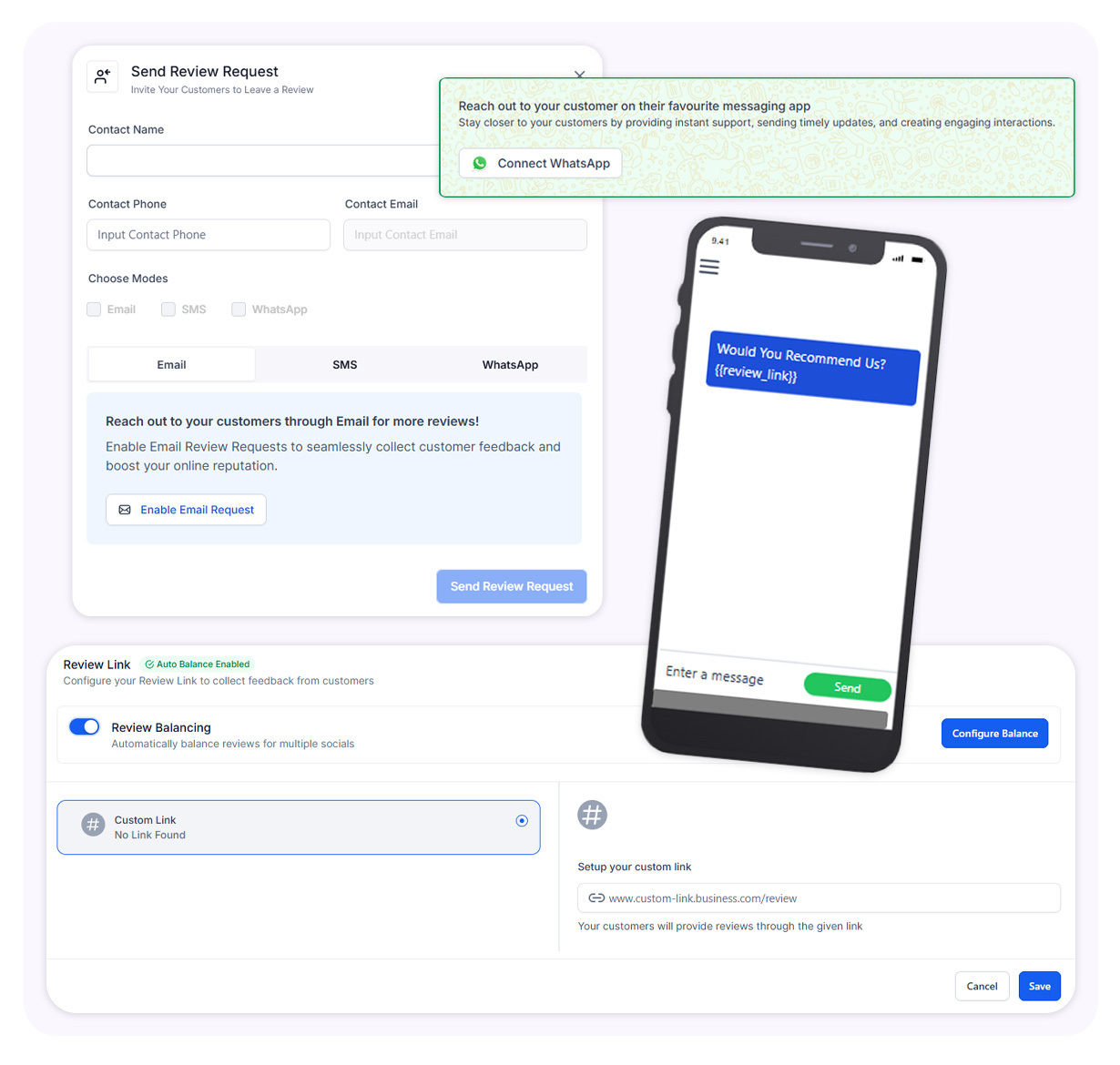 1️⃣ Request Reviews Automatically – Send SMS & email reminders after client interactions.